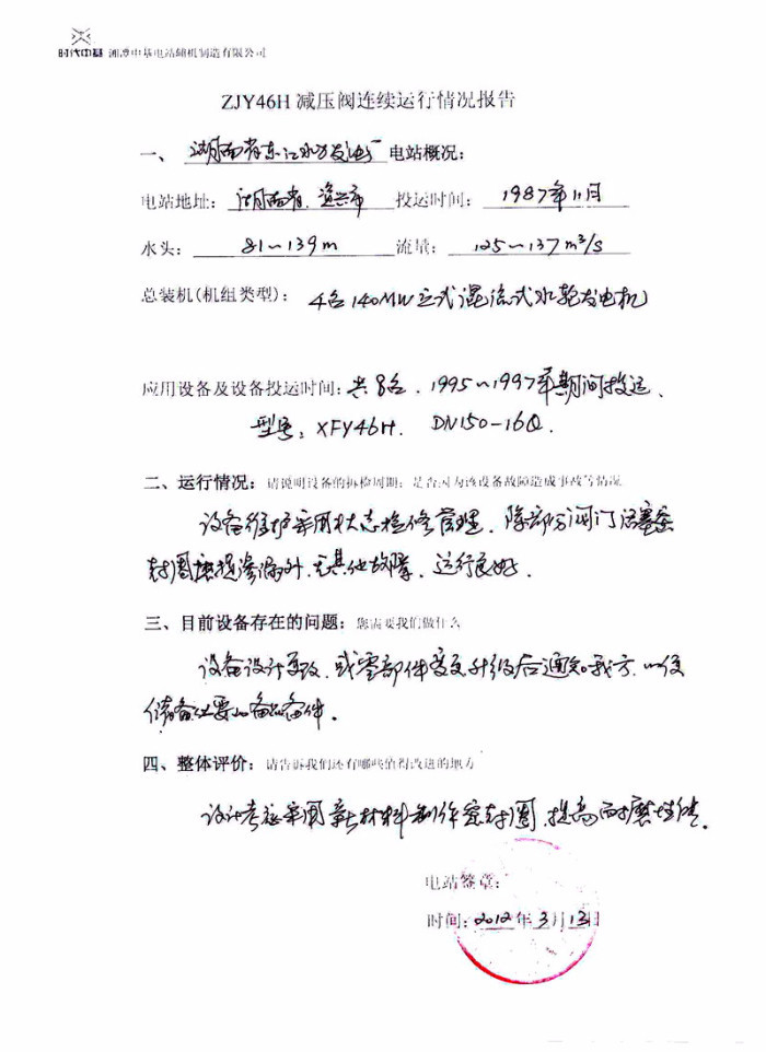 口徑:DN100 DN150  壓力:1.6MPa  電站裝機(MW×臺數):125×4  最大水頭:139m
